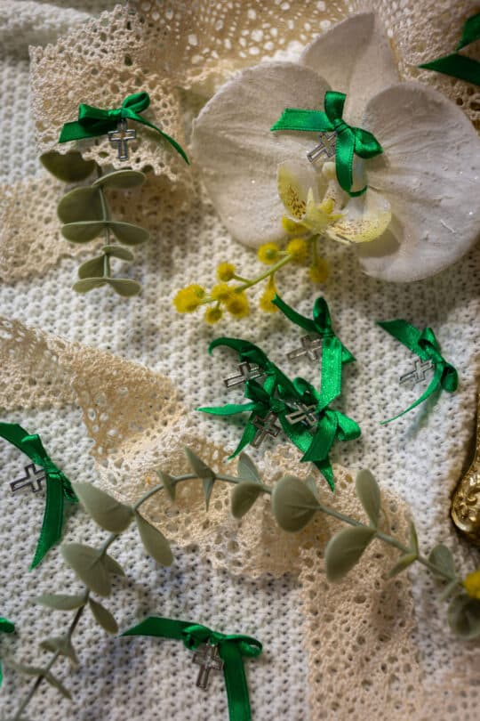 Cruciulițele se poartă în ziua botezului la biserică, se pun invitaților ce participă la slujbă.