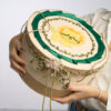 Panglica verde vibrantă și detaliile florale adaugă un aer natural și festiv, perfect pentru un eveniment deosebit.