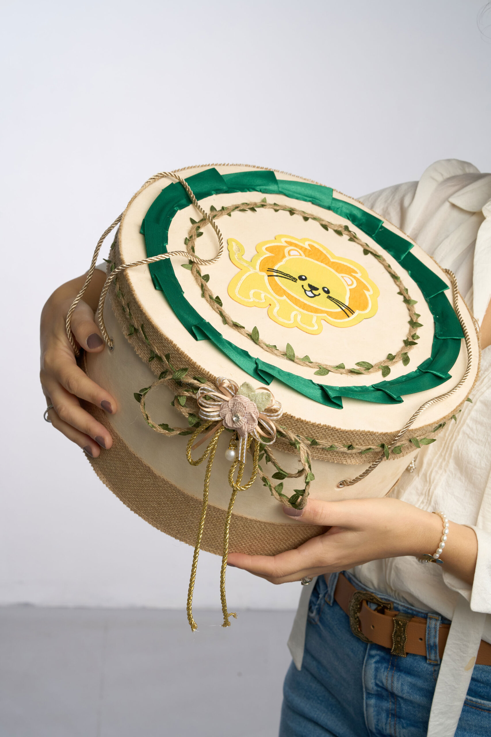 Cufărul de botez cu tematică Jungle este un must-have pentru nășicile creative și jucăușe.