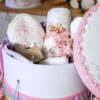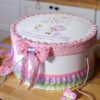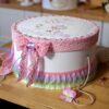 Cutie decorată handmade pentru hăinuțe și accesorii botez, cutie transport piese botez.