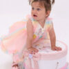 Cufărul vine într-o nuanță vibrantă și intensă, cu unicorn viu colorat, iar cutia este conturate de volane de satin degrade in nuantele unicornului, funde de satin, benzi de dantelă.