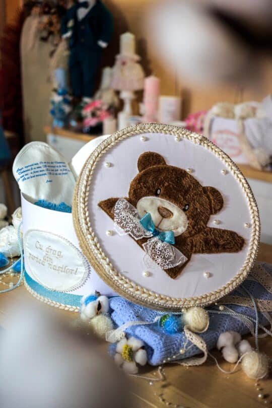 Acest cufăr cu ursuleț de la Andreeatex nu este doar un recipient pentru hăinuțe și accesorii, ci o piesă de colecție care va adăuga un plus de farmec și eleganță la ceremonia de botez. Este o modalitate minunată de a păstra amintirile acestui moment special și de a le împărtăși cu cei dragi.