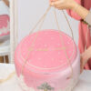 Dantela organică înconjoară cufărul și îi oferă eleganță. Șnurul împletit este folosit la decor și este și perfect ca mânere pentru un transport ușor.