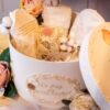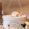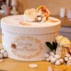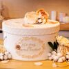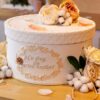 Cutie decorată handmade pentru hăinuțe și accesorii botez, cutie transport piese botez.