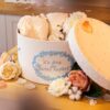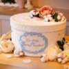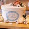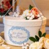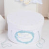 Cutie decorată handmade pentru hăinuțe și accesorii botez, cutie transport piese botez.