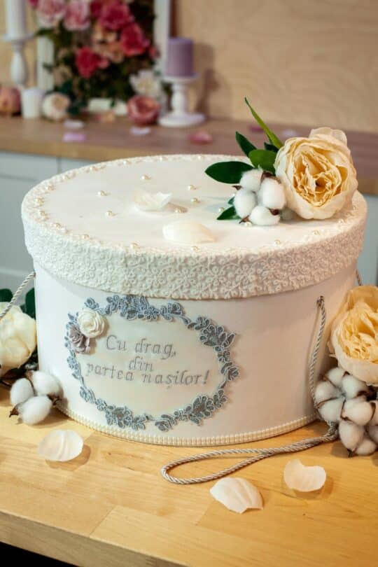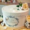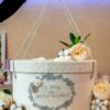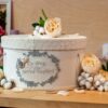 Cutie decorată handmade pentru hăinuțe și accesorii botez, cutie transport piese botez.