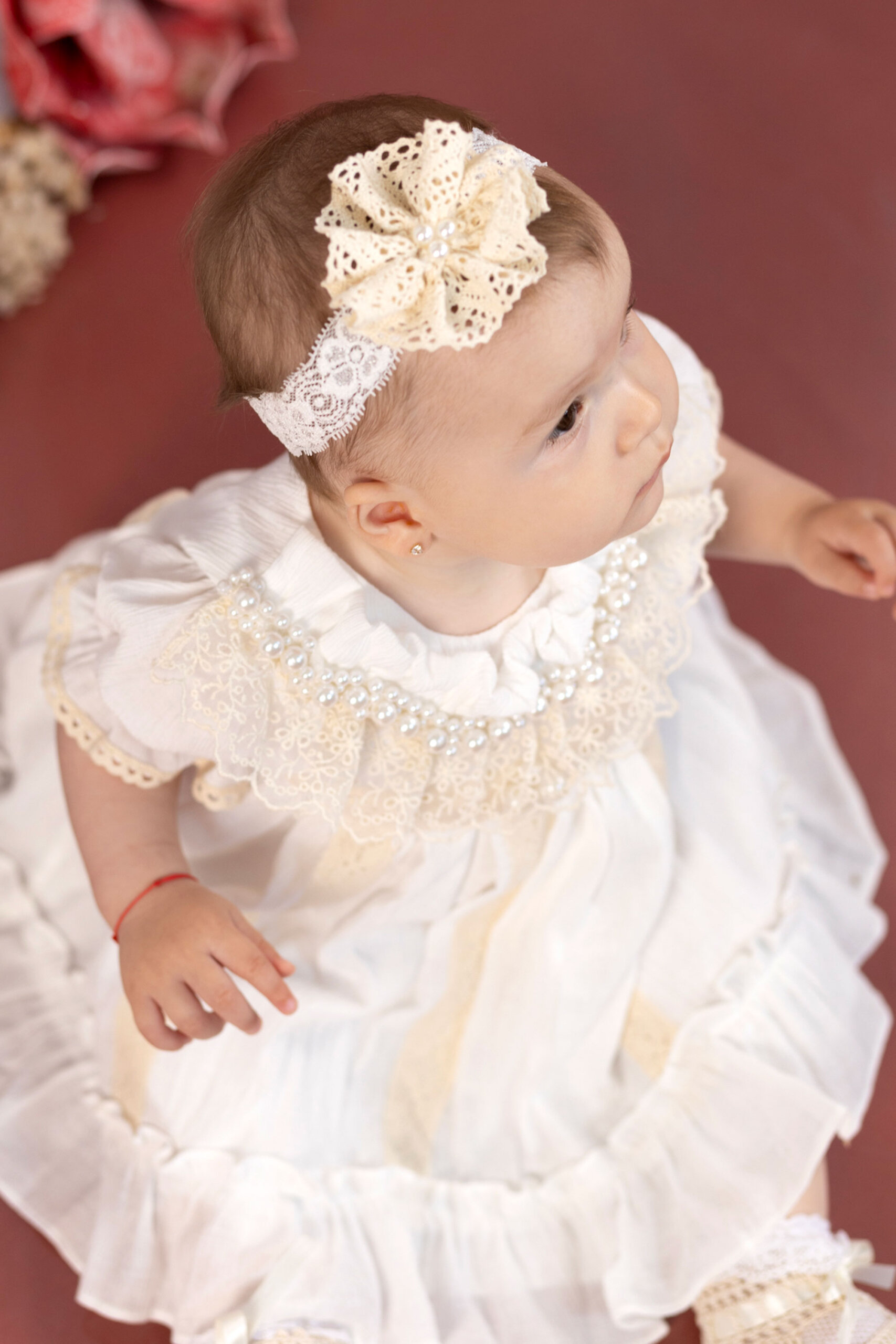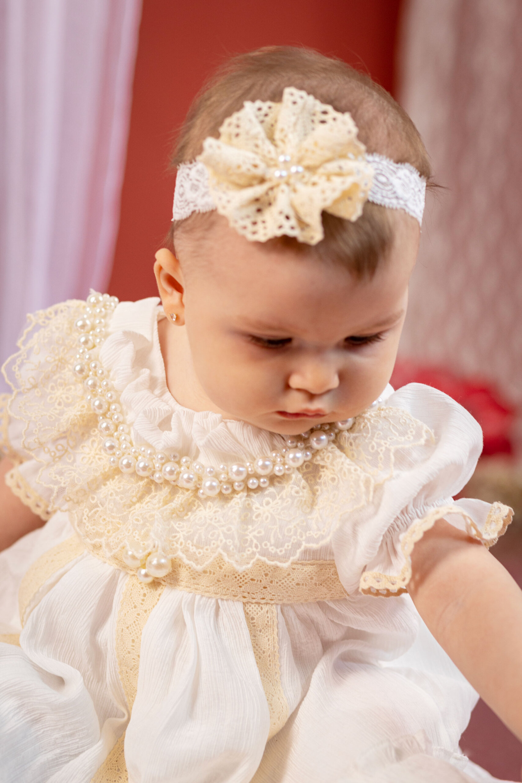 - Setul conține 2 piese: rochiță, bentiță cu floricică dantelă