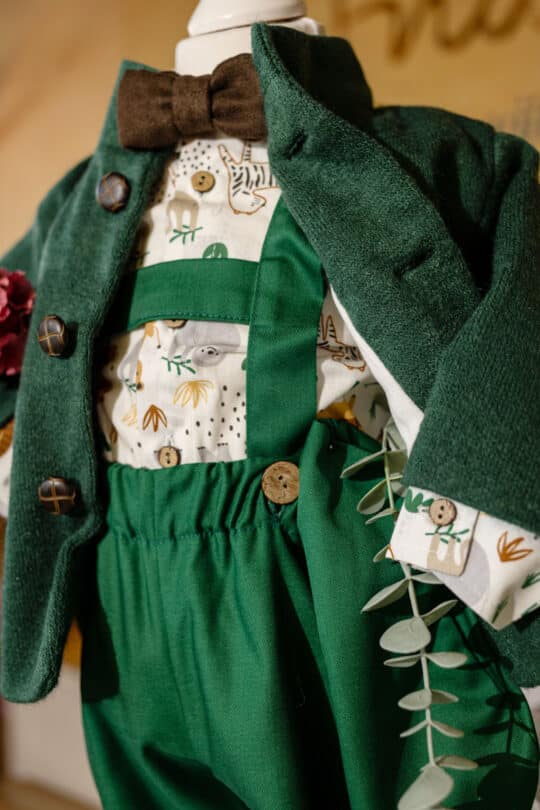 Costum botez cu sacou slim-fit din catifea – 5 piese