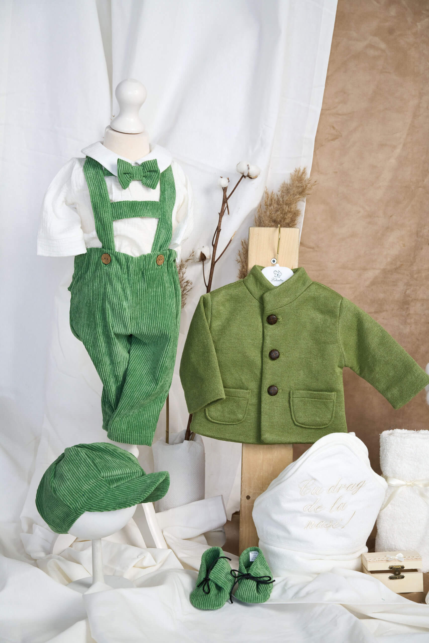 Costum botez cu sacou slim-fit din catifea – 5 piese