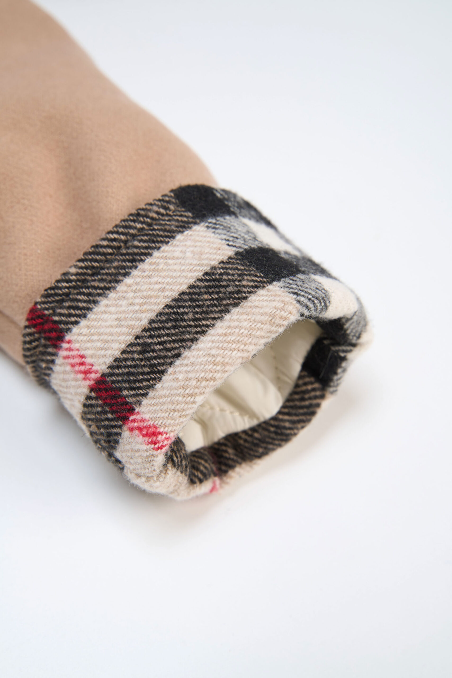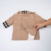 Disponibilă în două variante elegante: Bleu soft, cu accente în carouri crem-albastre, pentru un look atemporal și rafinat și bej cu imprimeu clasic, inspirat de stilul britanic, pentru un aer nobil și elegant.