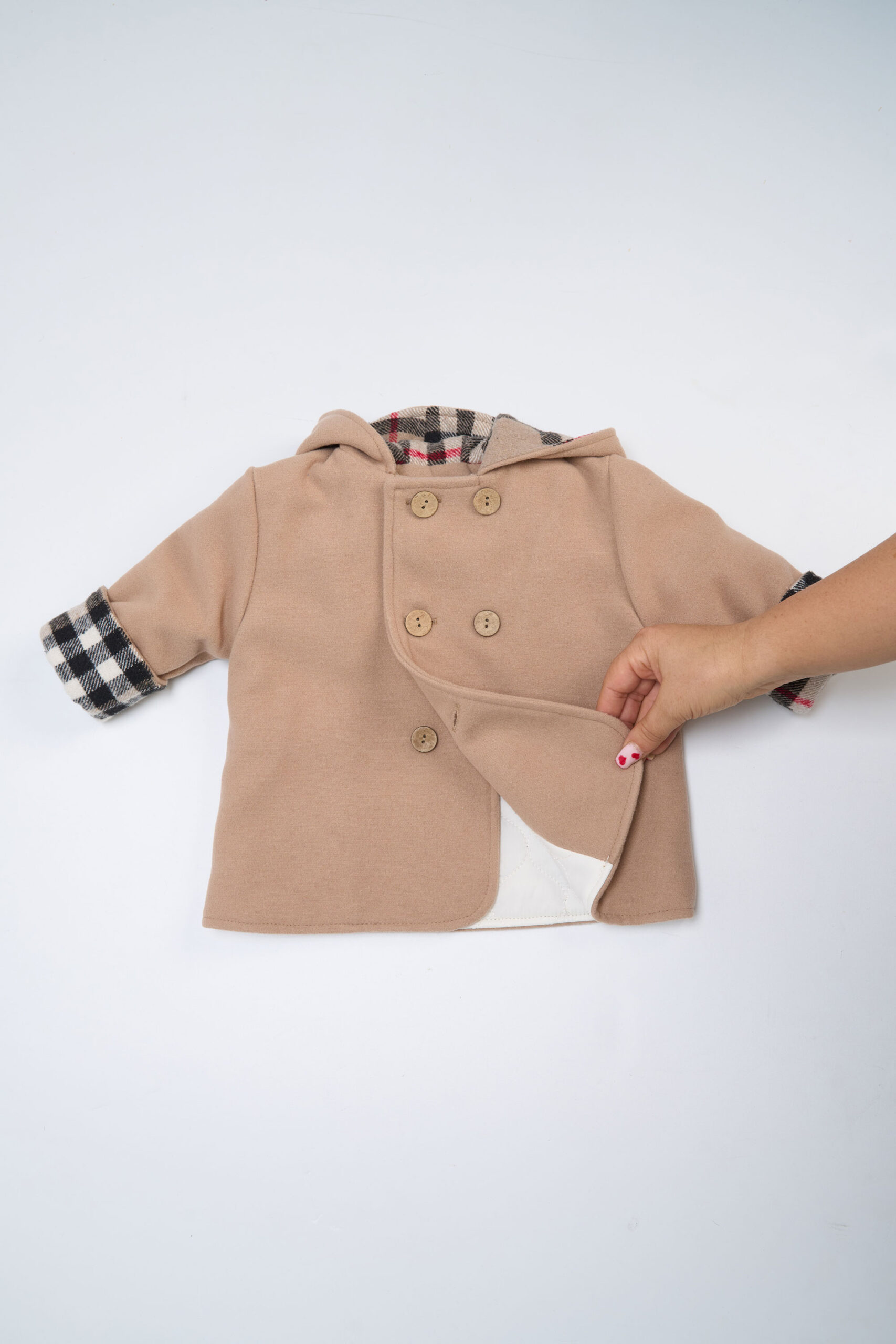 Jachetă din stofă cu glugă, creată cu grijă pentru bebelușul tău.