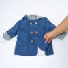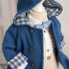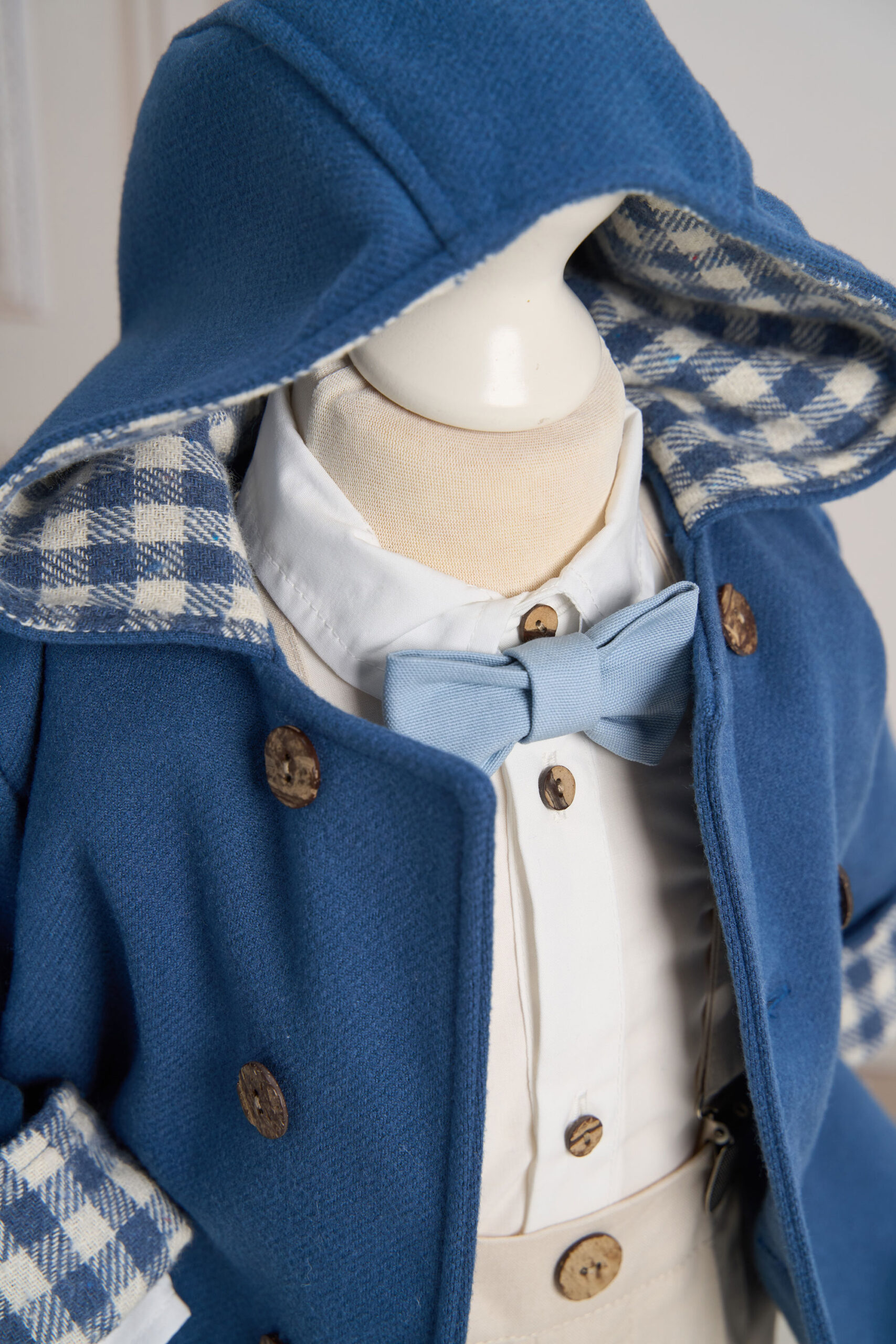 Croiala clasică, închisă cu nasturi din lemn și gluga căptușită, aduc un aer delicat, dar distins — perfect pentru botez, aniversări sau evenimente speciale.