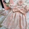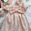 Rochița are cute duble care îi dau un volum ușor, iar central are o fundiță supradimensionată din tafta.