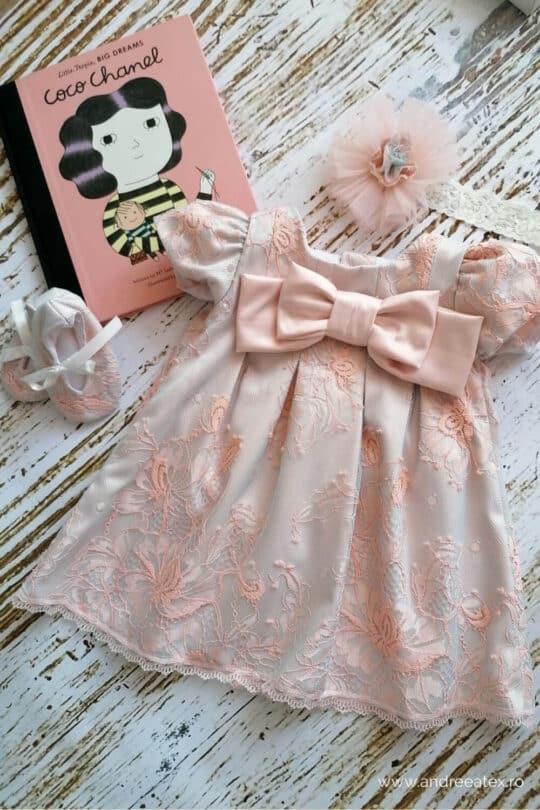 Setul conține 3 piese: rochiță, bentiță, botoșei