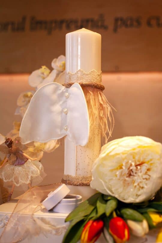 Lumânările pentru botez sunt special concepute pentru hăinuțele Andreeatex, lumânările sunt creații de serie mică și unicat. Tulluri diafane și jucăușe, culori pastelate, perluțe mici, jabouri crețe și nasturi ornament, toate aceste detalii crează un întreg tablou creeativ al artistului făuritor de lumânări.