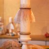 Lumânarea noastră, creată în serii mici este realizată manual, manufacturată cu tull strălucitor, pene nude și detalii din dantelă.