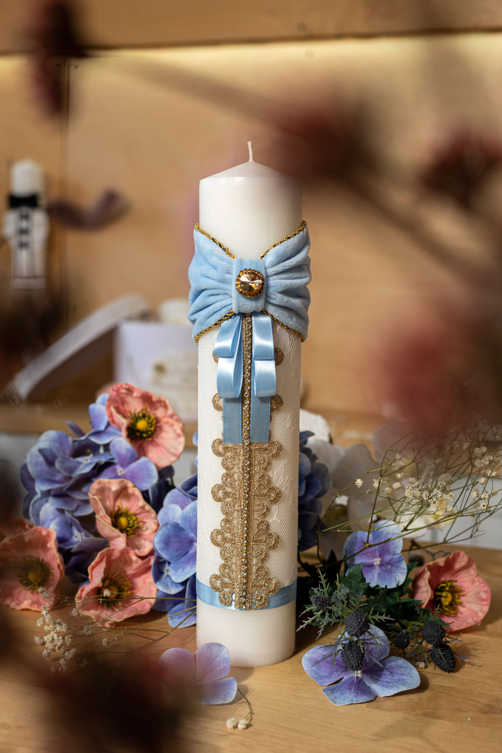Lumânările pentru botez sunt special concepute pentru hăinuțele Andreeatex, lumânările sunt creații de serie mică și unicat. Tulluri diafane și jucăușe, culori pastelate, perluțe mici, toate aceste detalii crează un întreg tablou creeativ al artistului făuritor de lumânări.