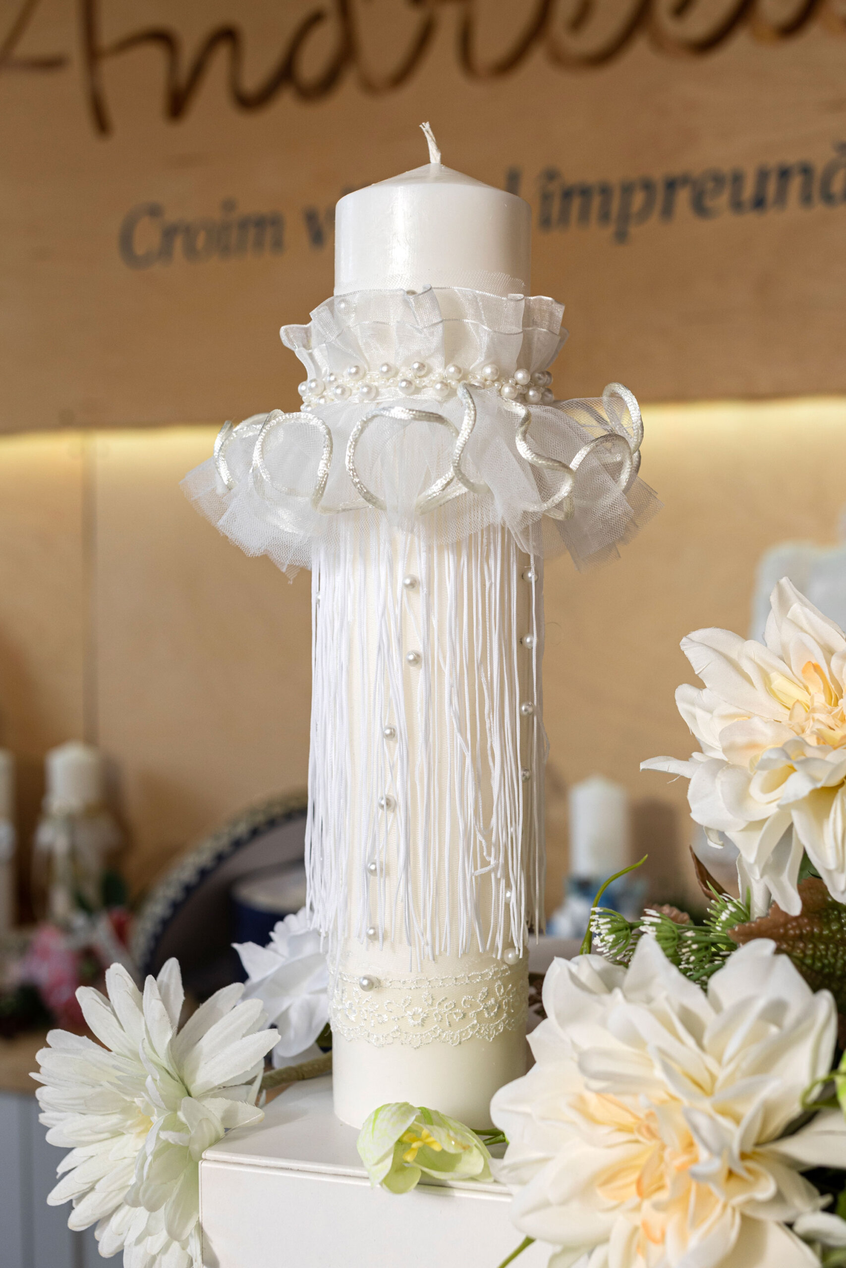 Lumânările pentru botez sunt special concepute pentru hăinuțele Andreeatex, lumânările sunt creații de serie mică și unicat. Tulluri diafane și jucăușe, culori pastelate, perluțe mici, toate aceste detalii creează un întreg tablou creativ al artistului făuritor de lumânări.