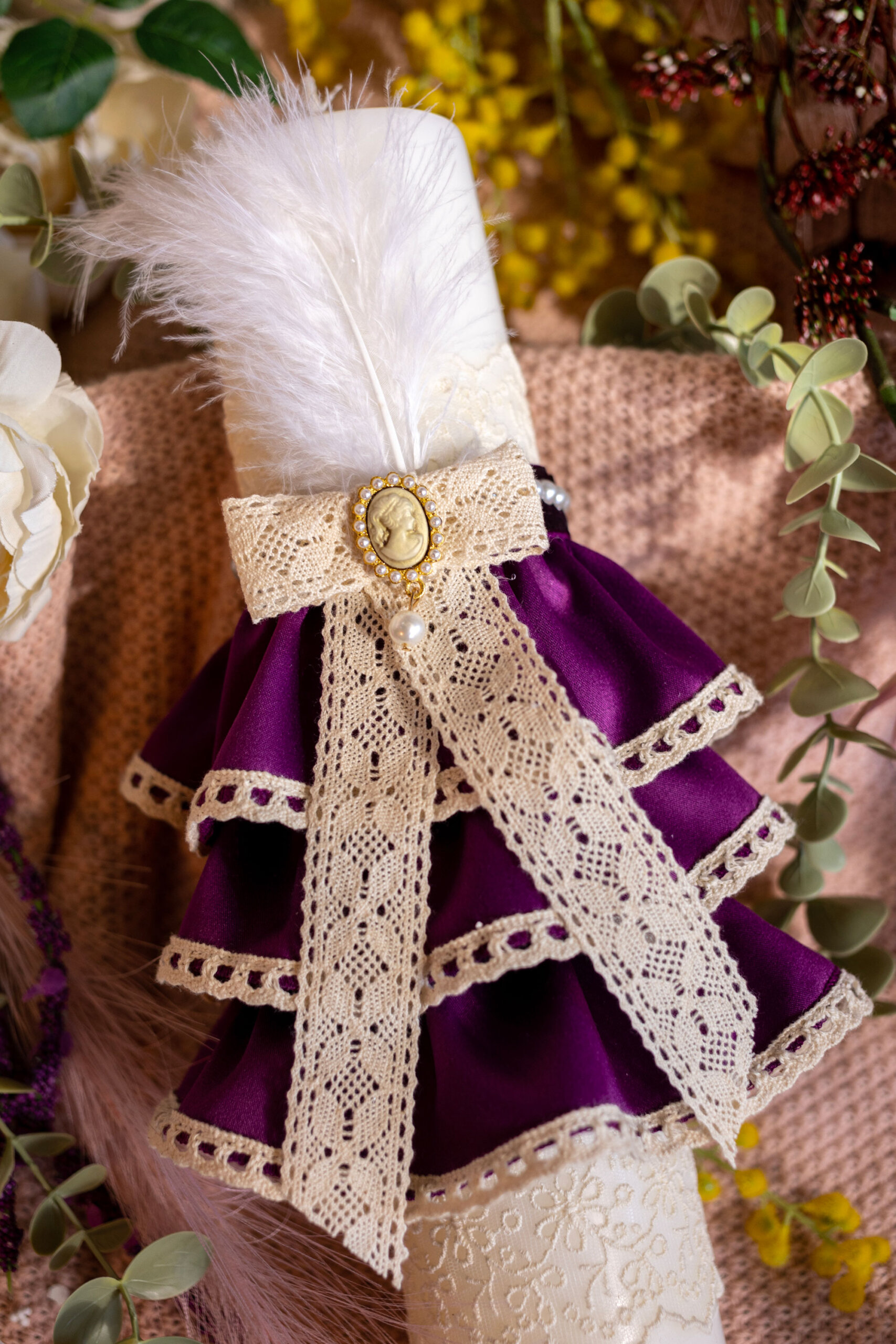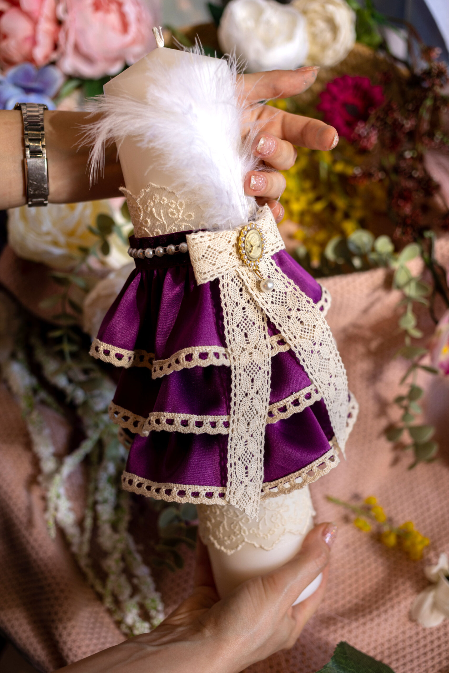 Lumânare botez A16 – Volane – mov