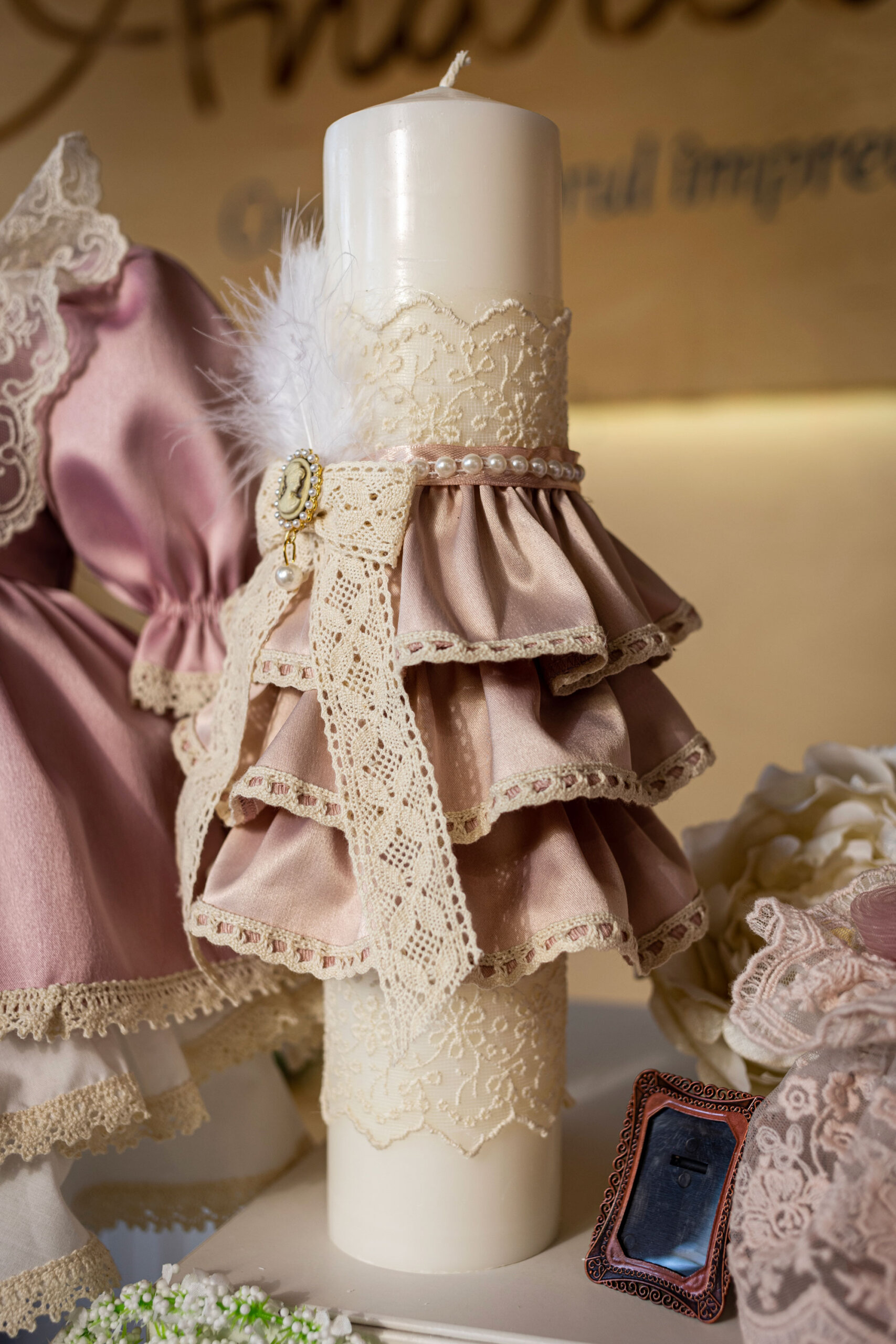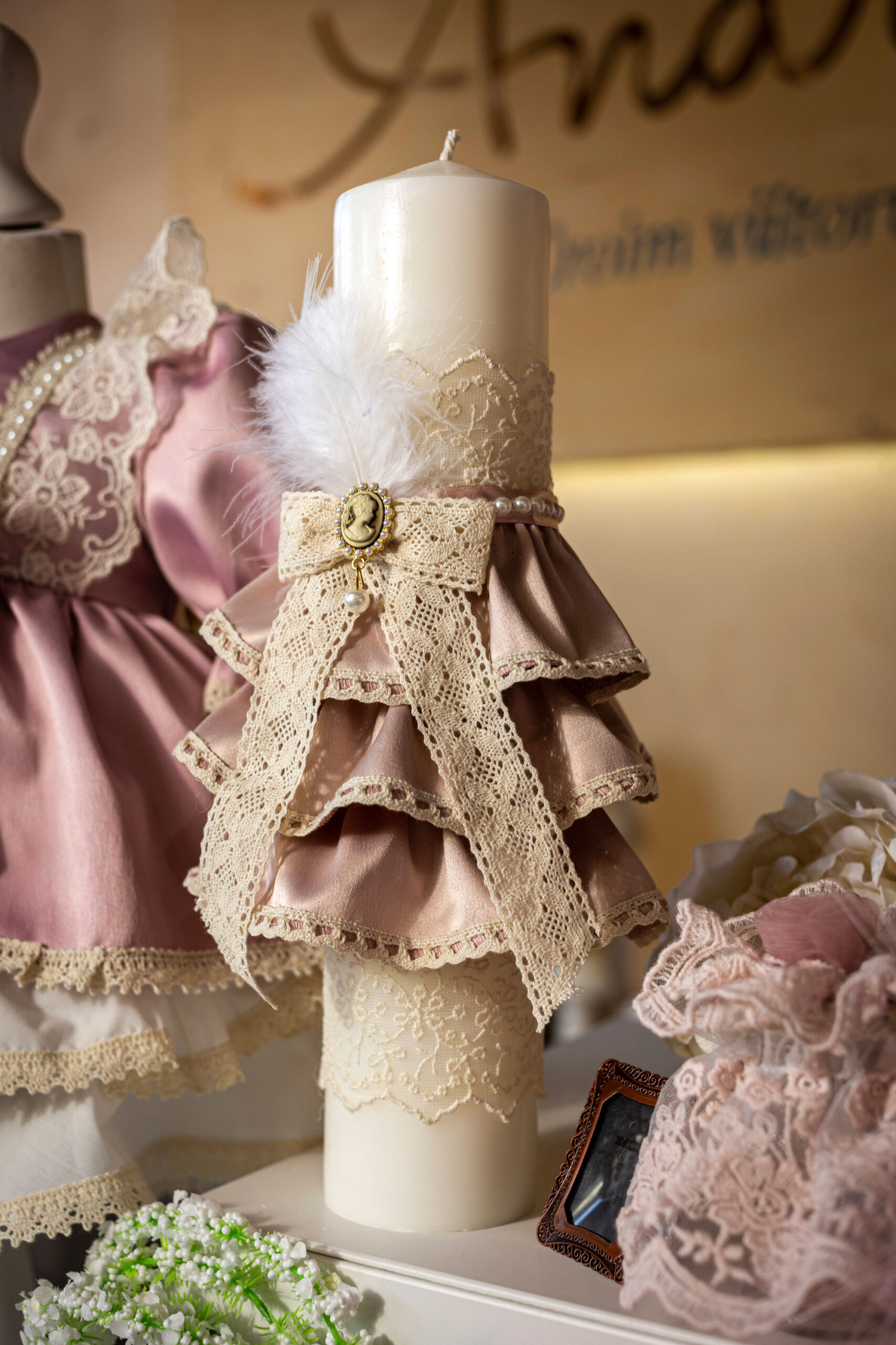 Lumânările pentru botez sunt special concepute pentru hăinuțele Andreeatex, lumânările sunt creații de serie mică și unicat. Tulluri diafane și jucăușe, culori pastelate, perluțe mici, toate aceste detalii creează un întreg tablou creativ al artistului făuritor de lumânări.