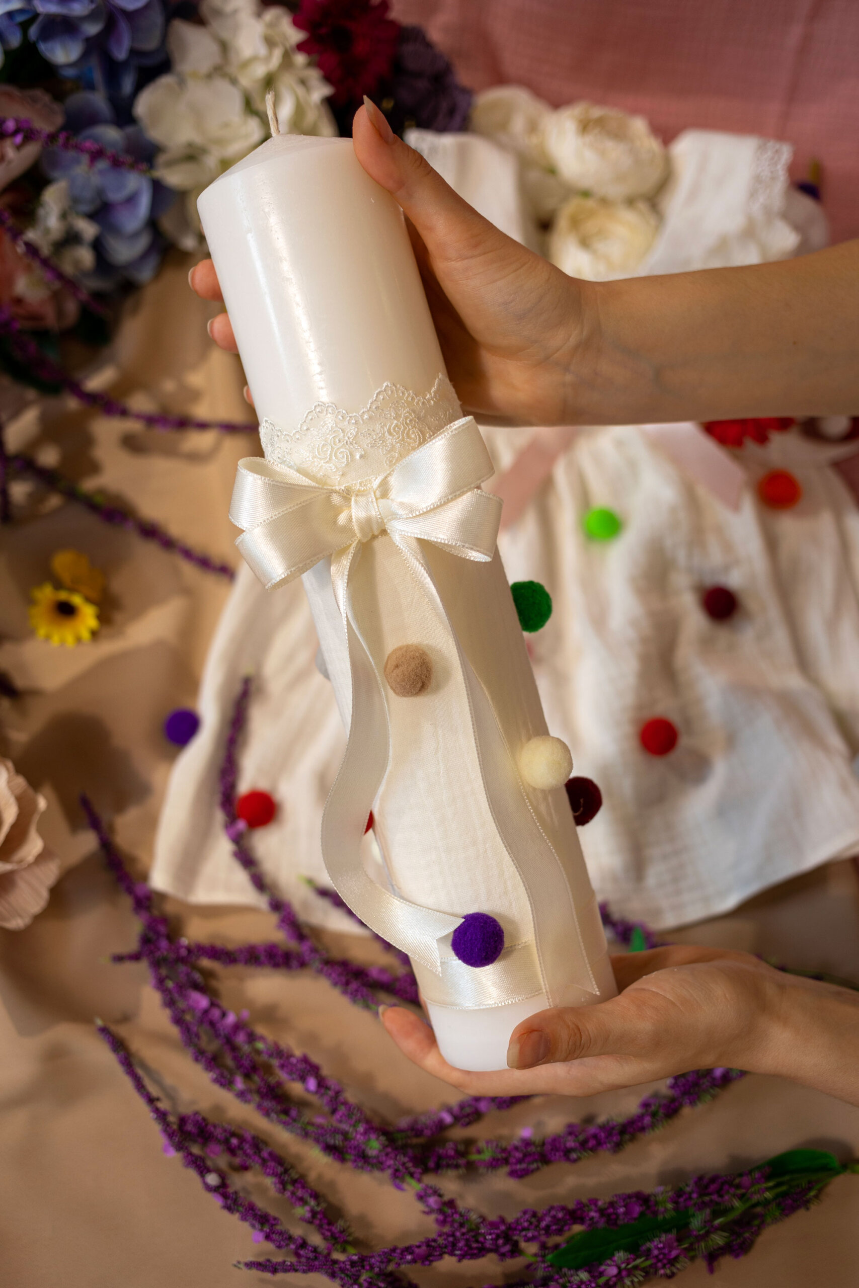 Lumânările pentru botez sunt special concepute pentru hăinuțele Andreeatex, lumânările sunt creații de serie mică și unicat. Tulluri diafane și jucăușe, culori pastelate, perluțe mici, toate aceste detalii creează un întreg tablou creativ al artistului făuritor de lumânări.