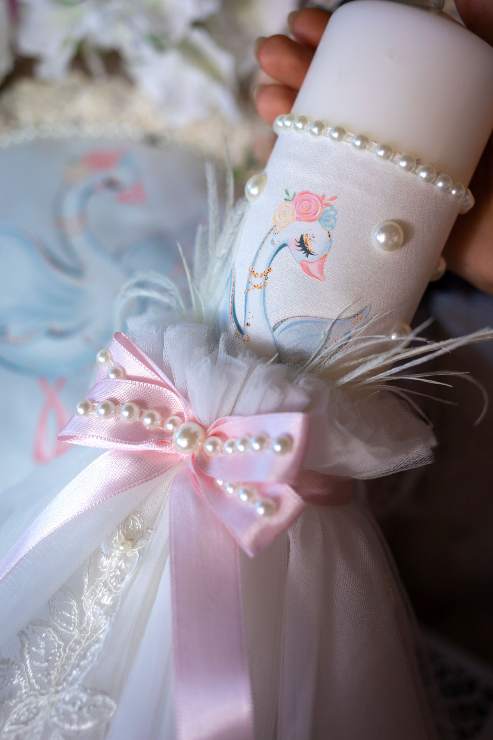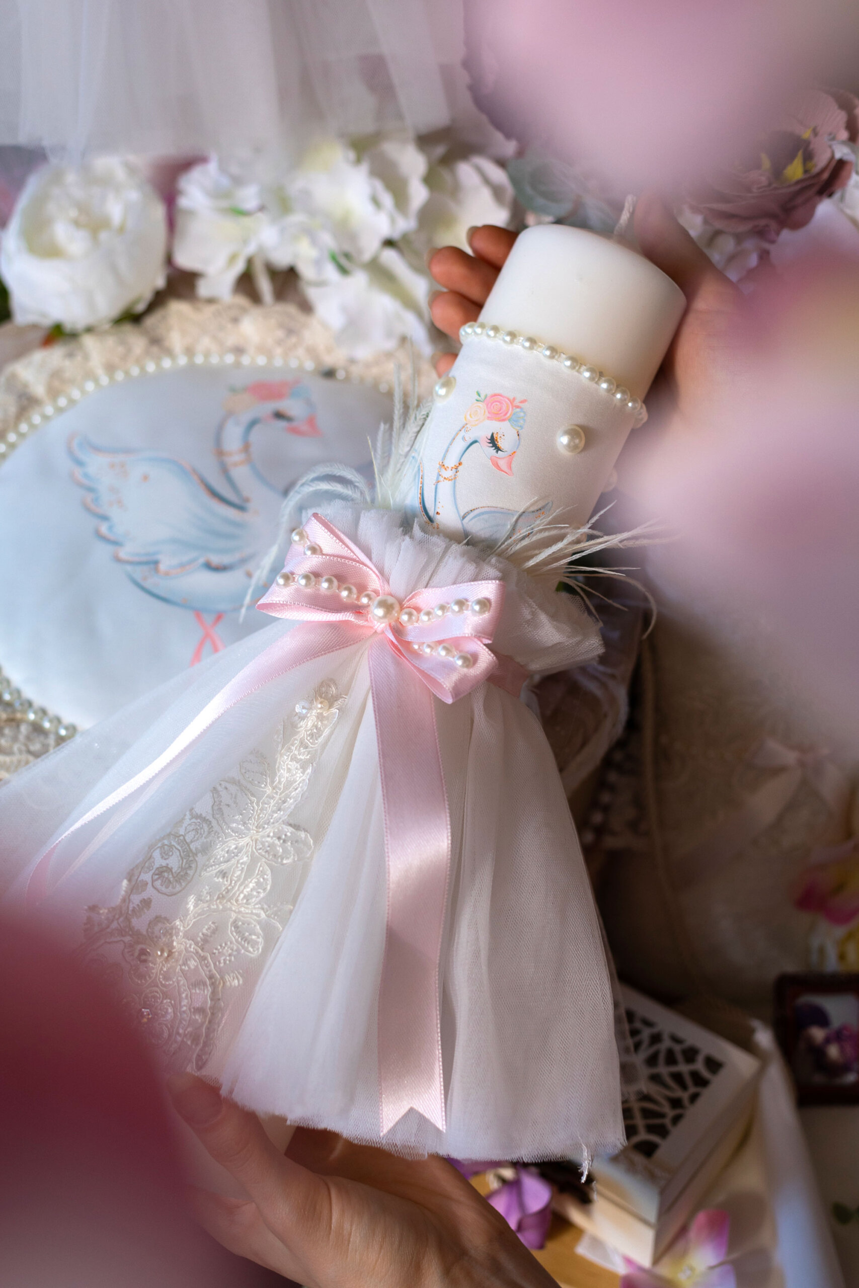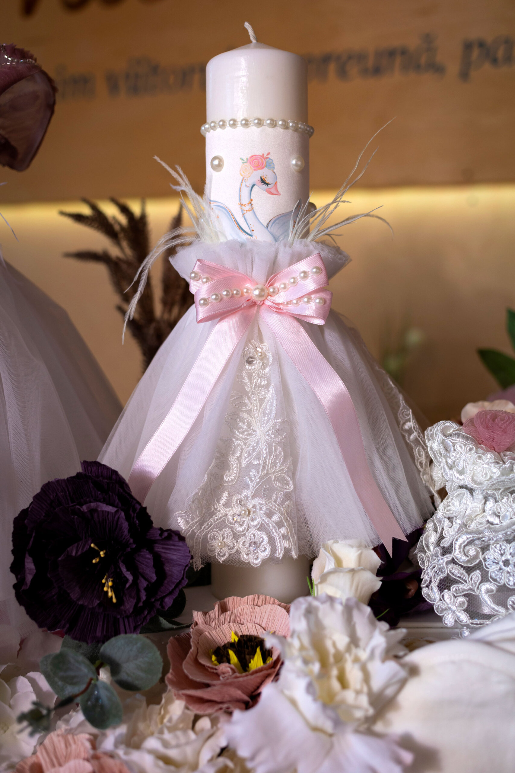 Lumânările pentru botez sunt special concepute pentru hăinuțele Andreeatex, lumânările sunt creații de serie mică și unicat. Tulluri diafane și jucăușe, culori pastelate, perluțe mici, toate aceste detalii creează un întreg tablou creativ al artistului făuritor de lumânări.