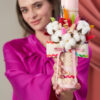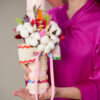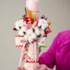 Decorată cu panglici viu colorate și elemente naturale ca flori de bumbac, dantelă și panglici, aduce un plus de prospețime ceremoniei de botez.