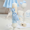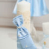 Îmbrăcată în dantelă delicată și accesorizată cu o fundă din tafta tip Mirror decorată manual cu perle, această lumânare adaugă un plus de eleganță ceremoniei de botez.