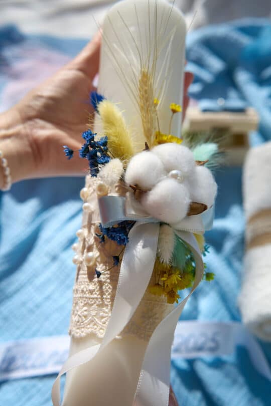 Lumânare botez A30 – Bumbac, Culoare și Bucurie – Bleu