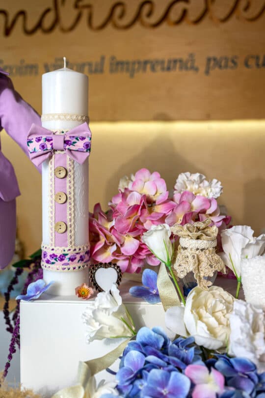 Lumânările pentru botez sunt special concepute pentru hăinuțele Andreeatex, lumânările sunt creații de serie mică și unicat. Tulluri diafane și jucăușe, culori pastelate, perluțe mici, toate aceste detalii crează un întreg tablou creeativ al artistului făuritor de lumânări.