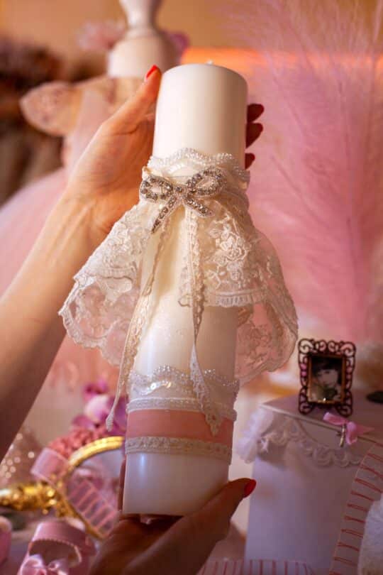 Lumânările pentru botez sunt special concepute pentru hăinuțele Andreeatex, lumânările sunt creații de serie mică și unicat. Tulluri diafane și jucăușe, culori pastelate, perluțe mici, toate aceste detalii crează un întreg tablou creeativ al artistului făuritor de lumânări.