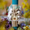 Nu putem uita de florile nemuritoare care înfrumusețează această lumânare. Aceste flori, create din bumbac, adaugă un aer de proaspăt și puritate ceremoniei și rămân frumoase pentru totdeauna.