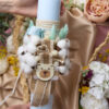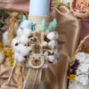 Nu putem uita de florile nemuritoare care înfrumusețează această lumânare. Aceste flori, create din bumbac, adaugă un aer de proaspăt și puritate ceremoniei și rămân frumoase pentru totdeauna.