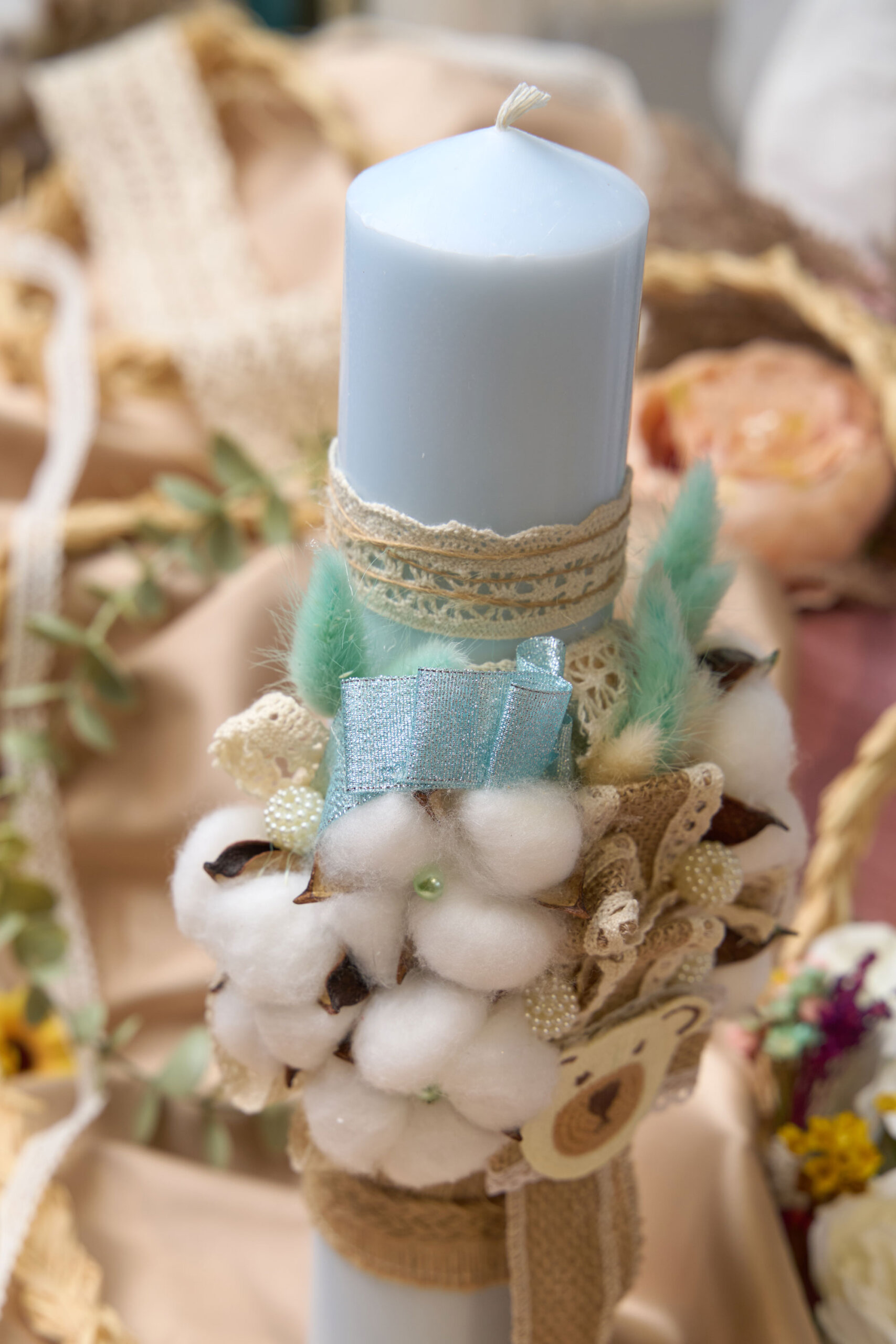 Vă prezint o lumanare cu un design încântător, perfectă pentru botez.