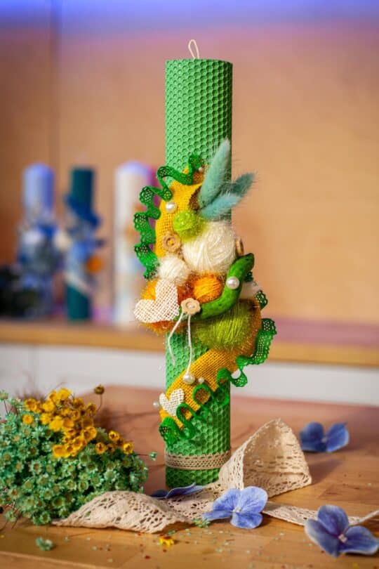 Lumânări vesele din ceară naturală, colorate, pastelate cu elemente jucăușe decorative.