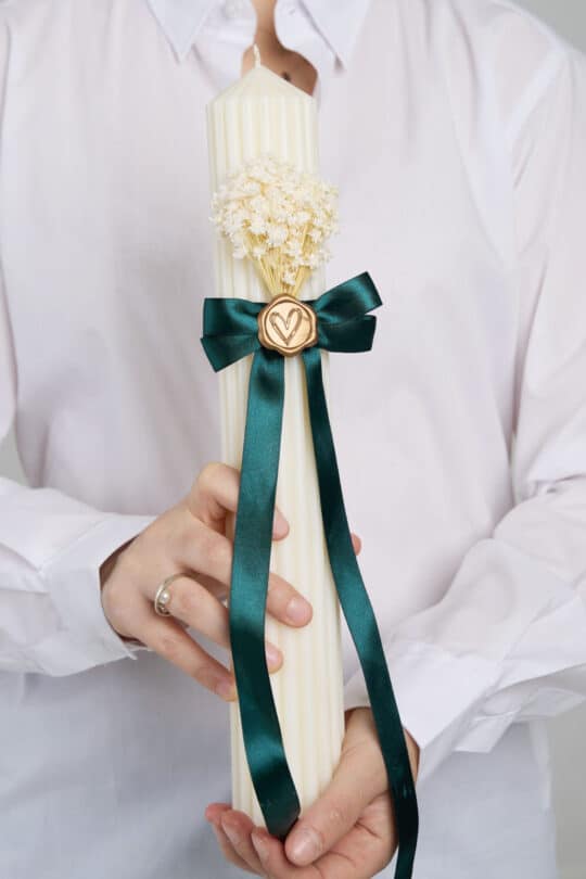 Lumânare de botez – Colecția „Sigiliu de Poveste” – Verde Satinat