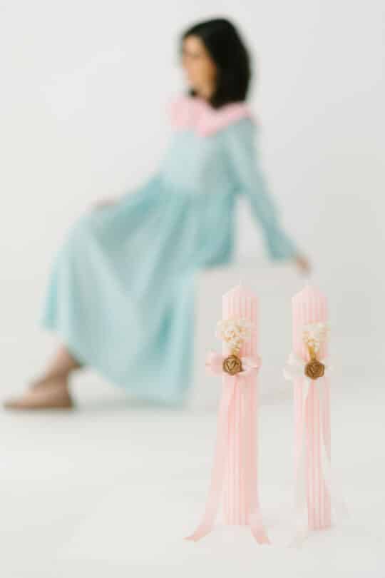 Lumânare stâlp roz de botez – Colecția „Sigiliu de Poveste” – Rose