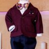 Costumul conține 5 piese: pantaloni, sacou, cămașă bumbac, papion, șapcă.