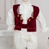 Costumul Micul Marchiz conține 4 piese : pantaloni, vestuță, cămașă cu jabou atașat, pălăriuță.