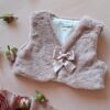 Vestă din blăniță moale, pufoasă și călduroasă, cu închidere cu gaică și nasture pe interior.