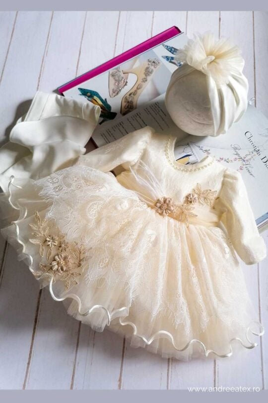 Rochița conține 3 piese: rochiță, turbănel, bolero