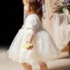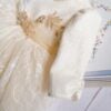 Rochița are aplicații așezate manual, detalii de dantelă romantice.