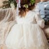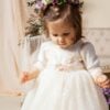 Rochiță manufacturată din dantelă Chantilly, fină, în culoare pastel.