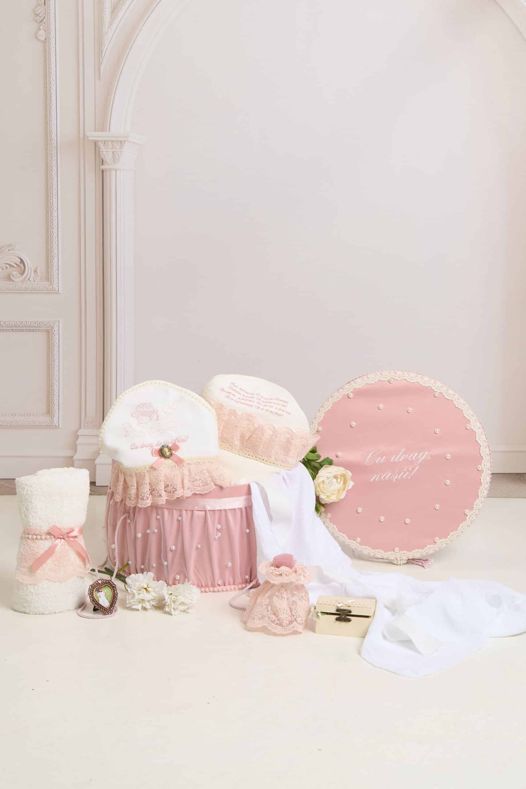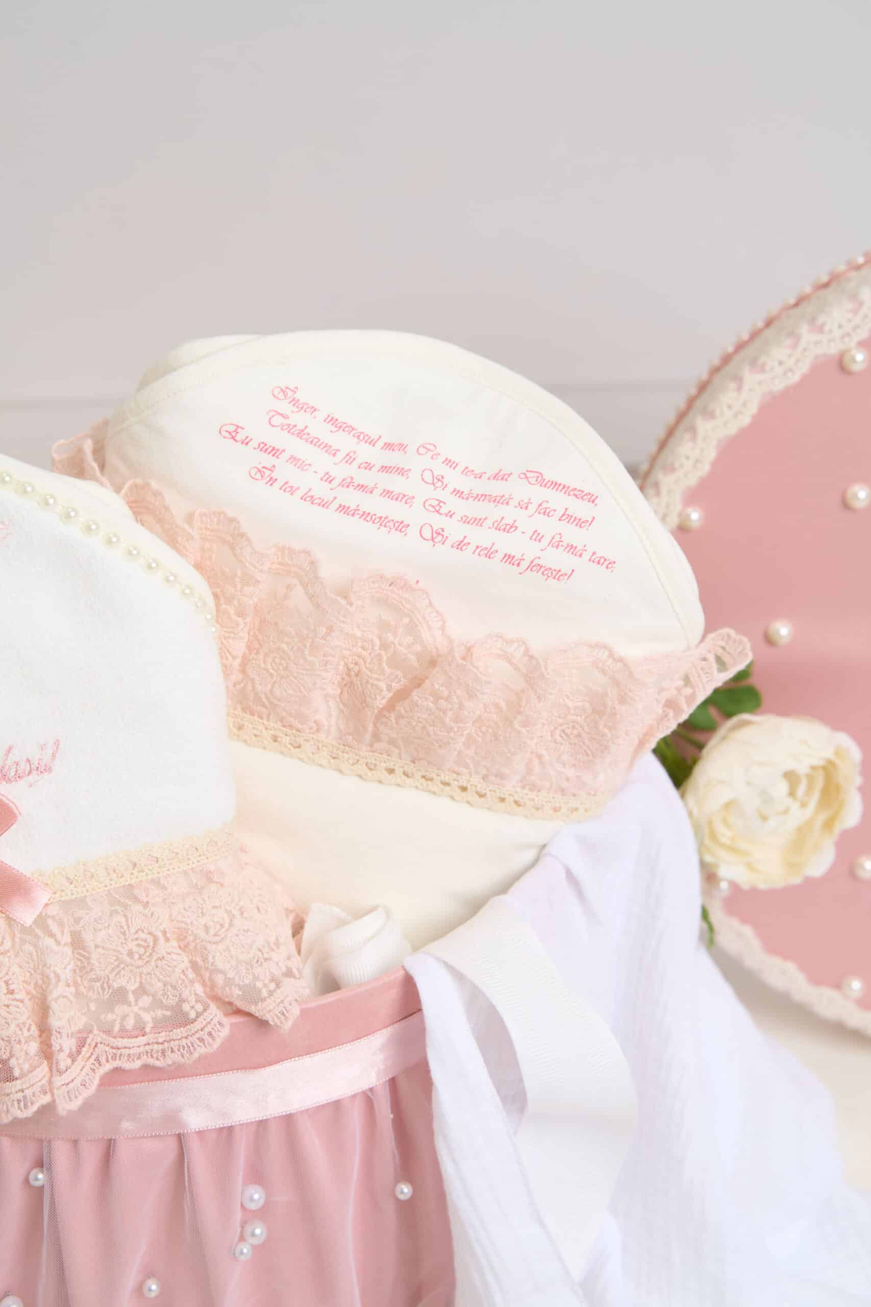 Pachet botez -15% REDUCERE – Cufăr Trusou Pearl – roz + Trusou botez – Claire