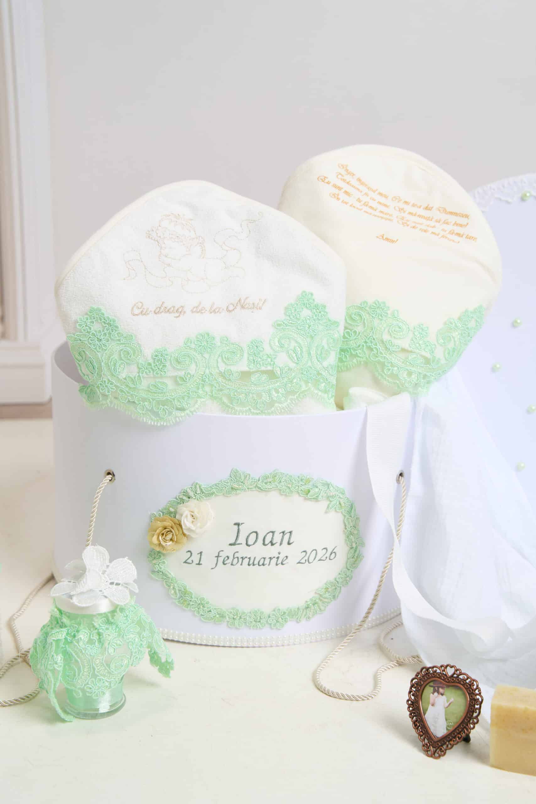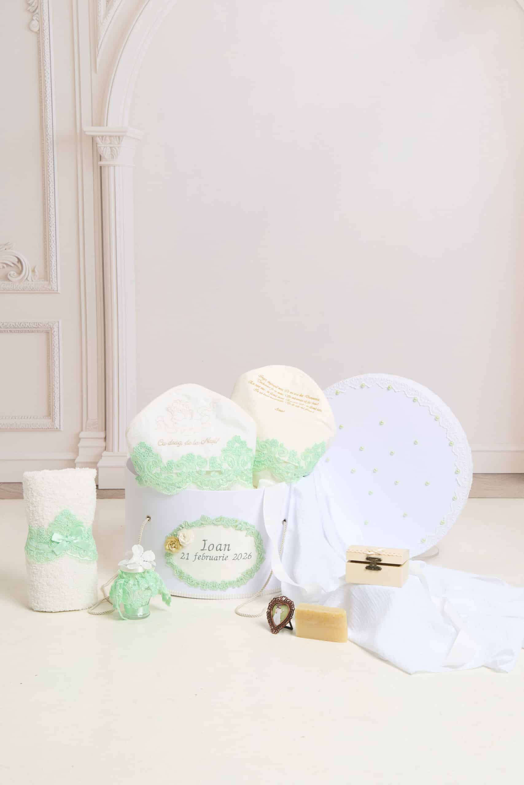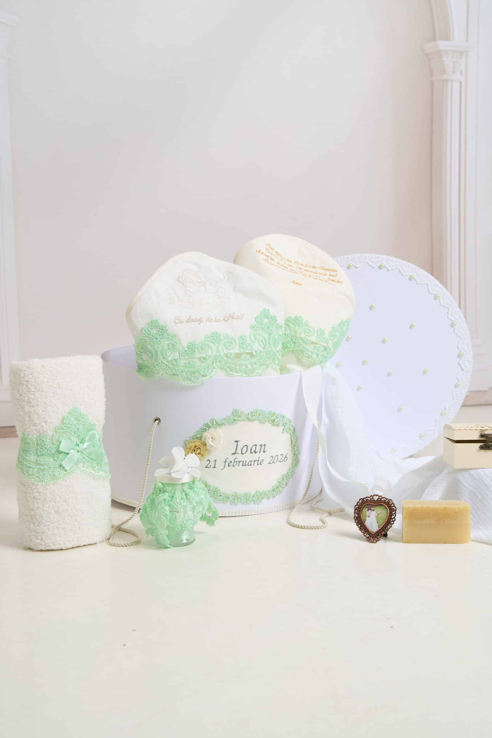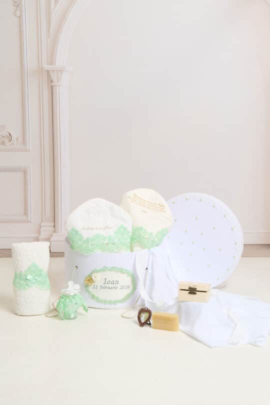 Pachet botez -15% REDUCERE – Cufăr Mentă + Trusou botez – mentă