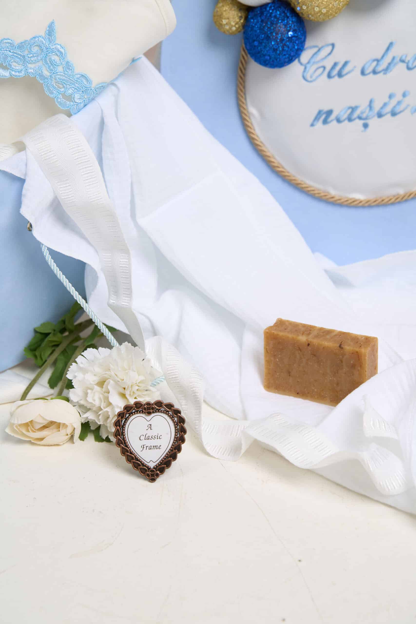 - Mini ramă „mărturie” – pentru poză bebeluș sau iconiță