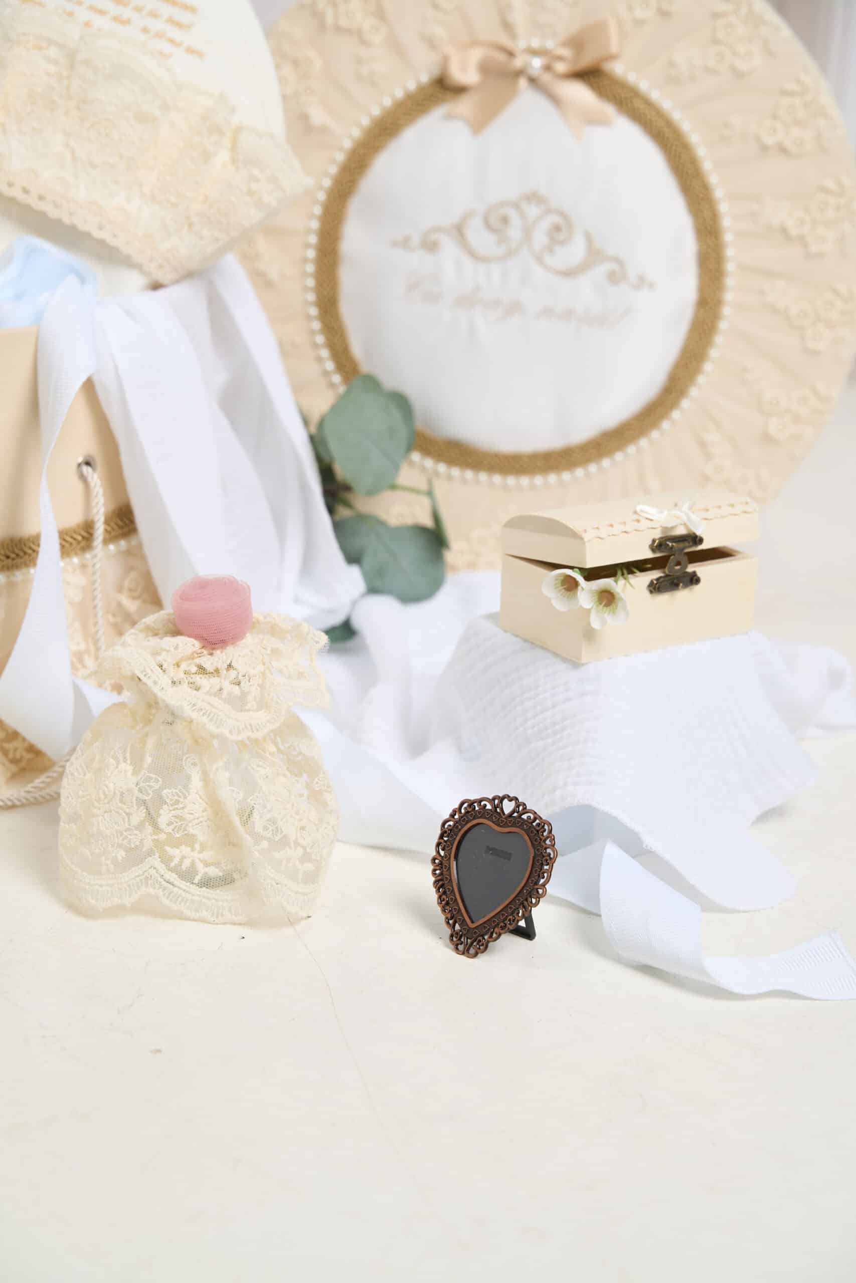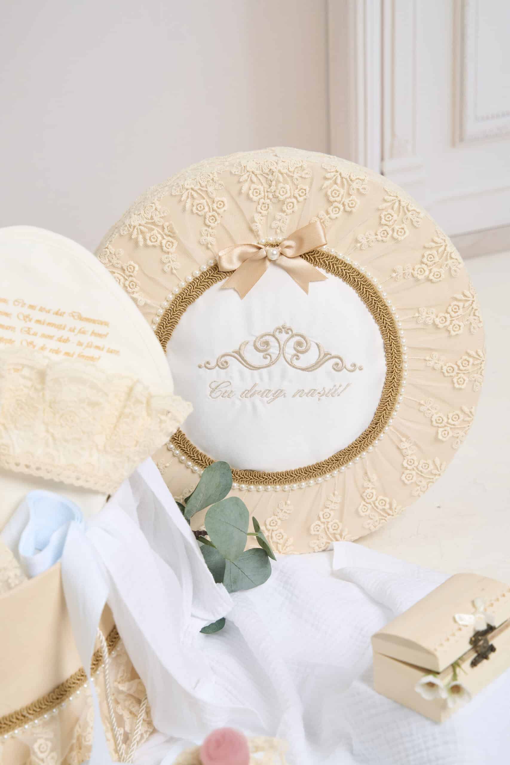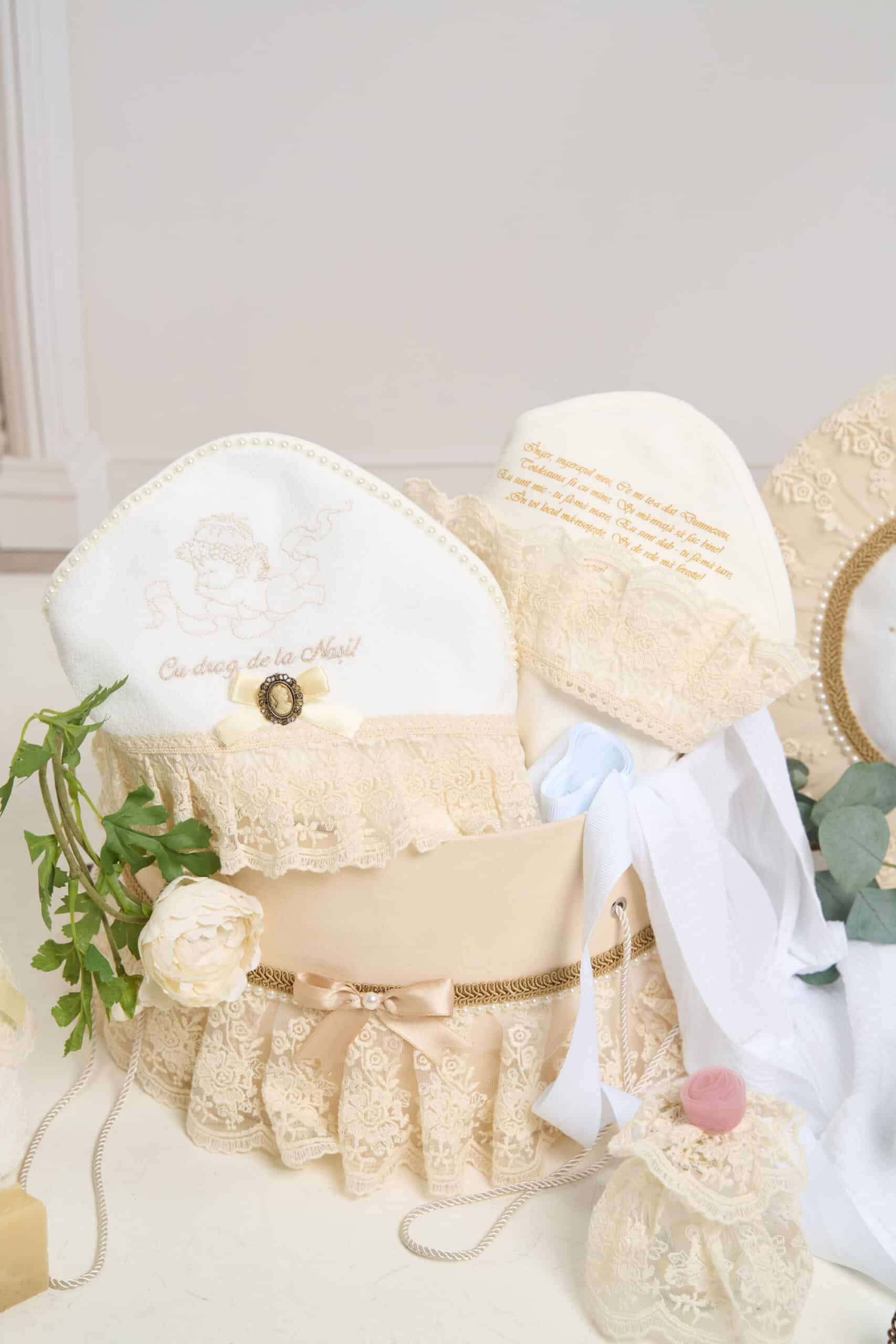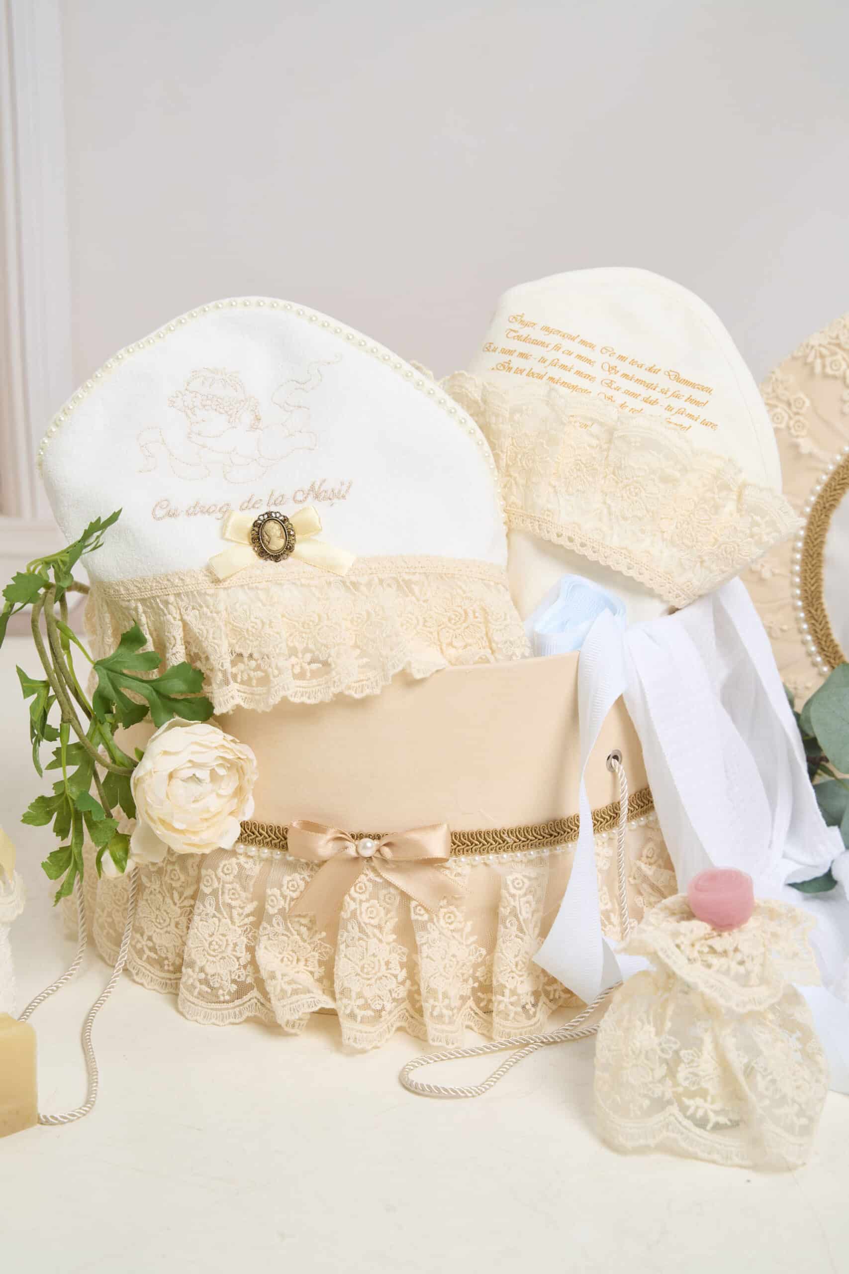 Pachet botez -15% REDUCERE – Cufăr Trusou – Volane Vintage – bej + Trusou botez – Lilibet