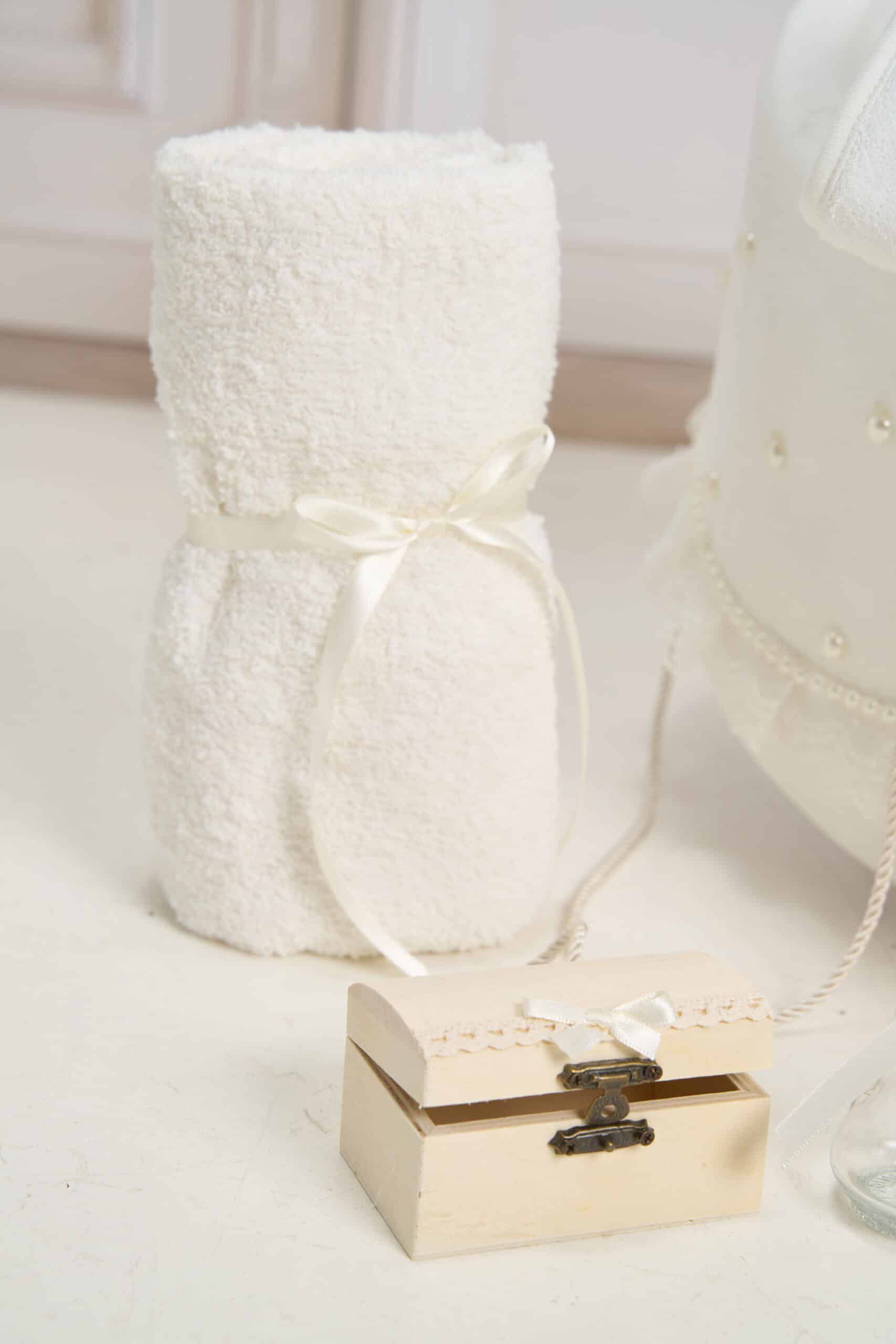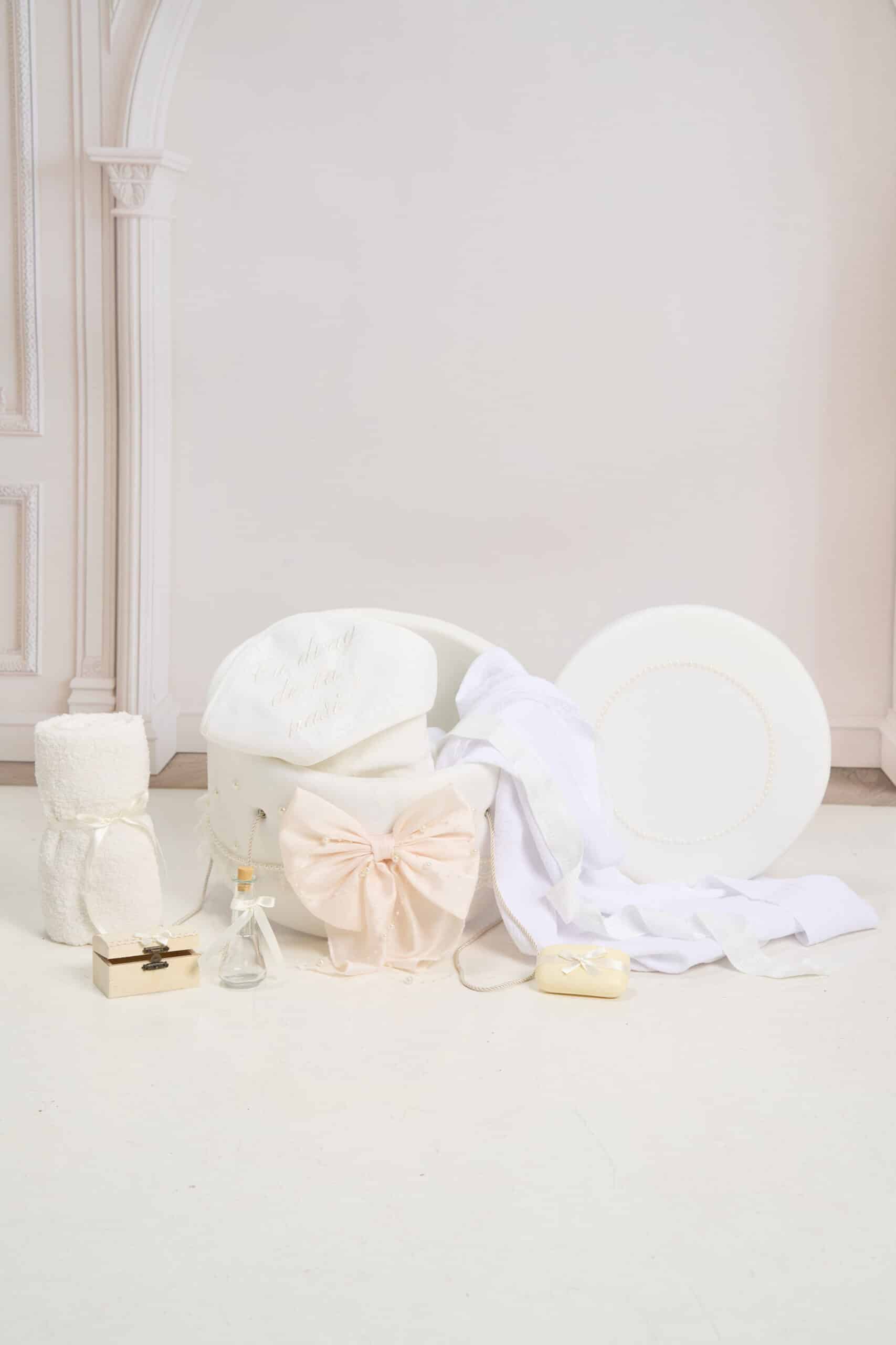 Pachet botez cu -20% REDUCERE – Cufăr buretat BORANGIC ivoire + Trusou PureBebe