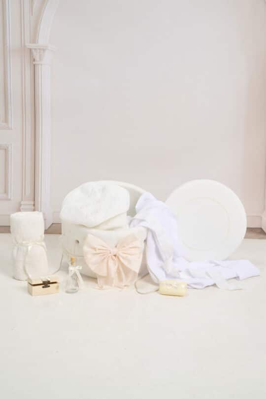 ✨ Pachet botez cu -20% REDUCERE – Cufăr buretat Borangic + Trusou PureBebe