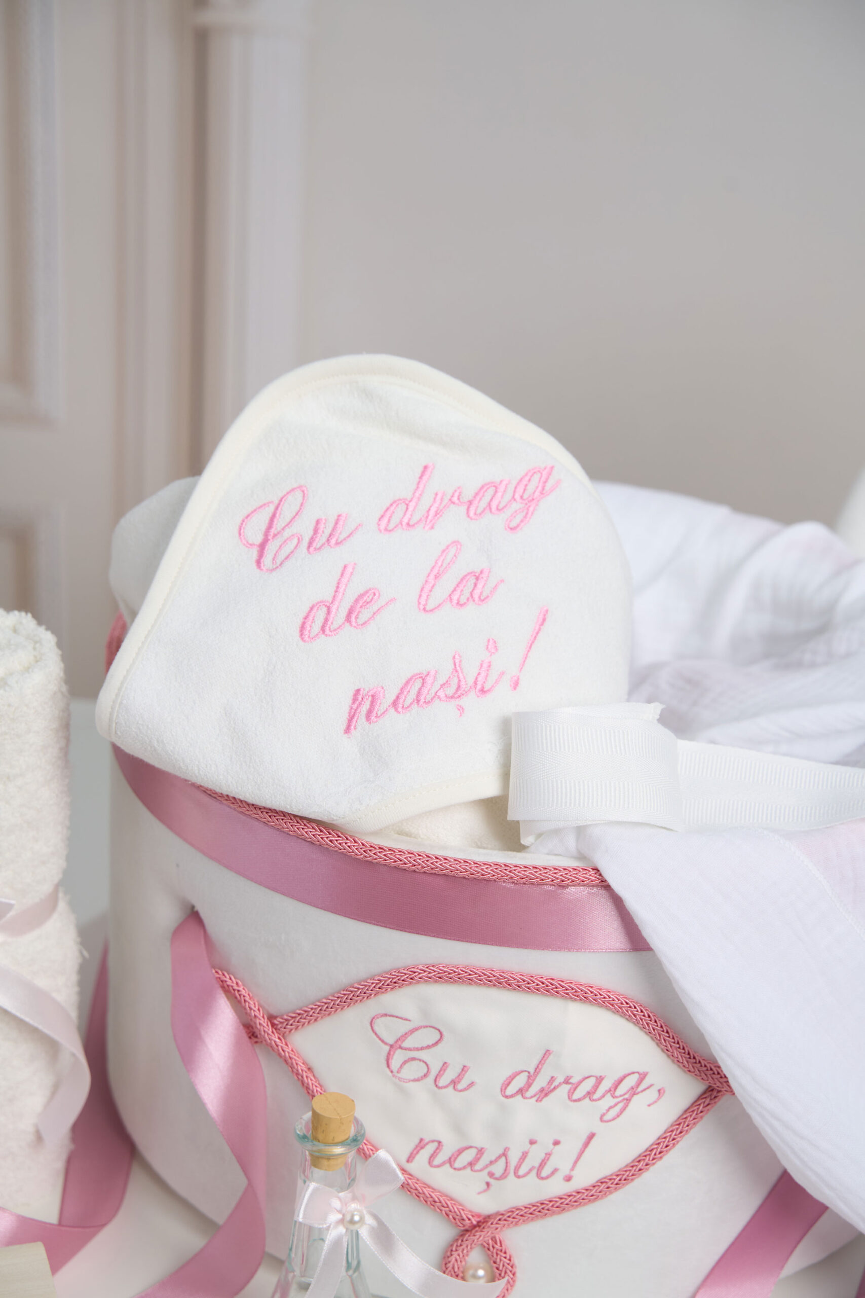 Pachet botez -20% REDUCERE – Cufăr buretat + Trusou PureBebe – roz